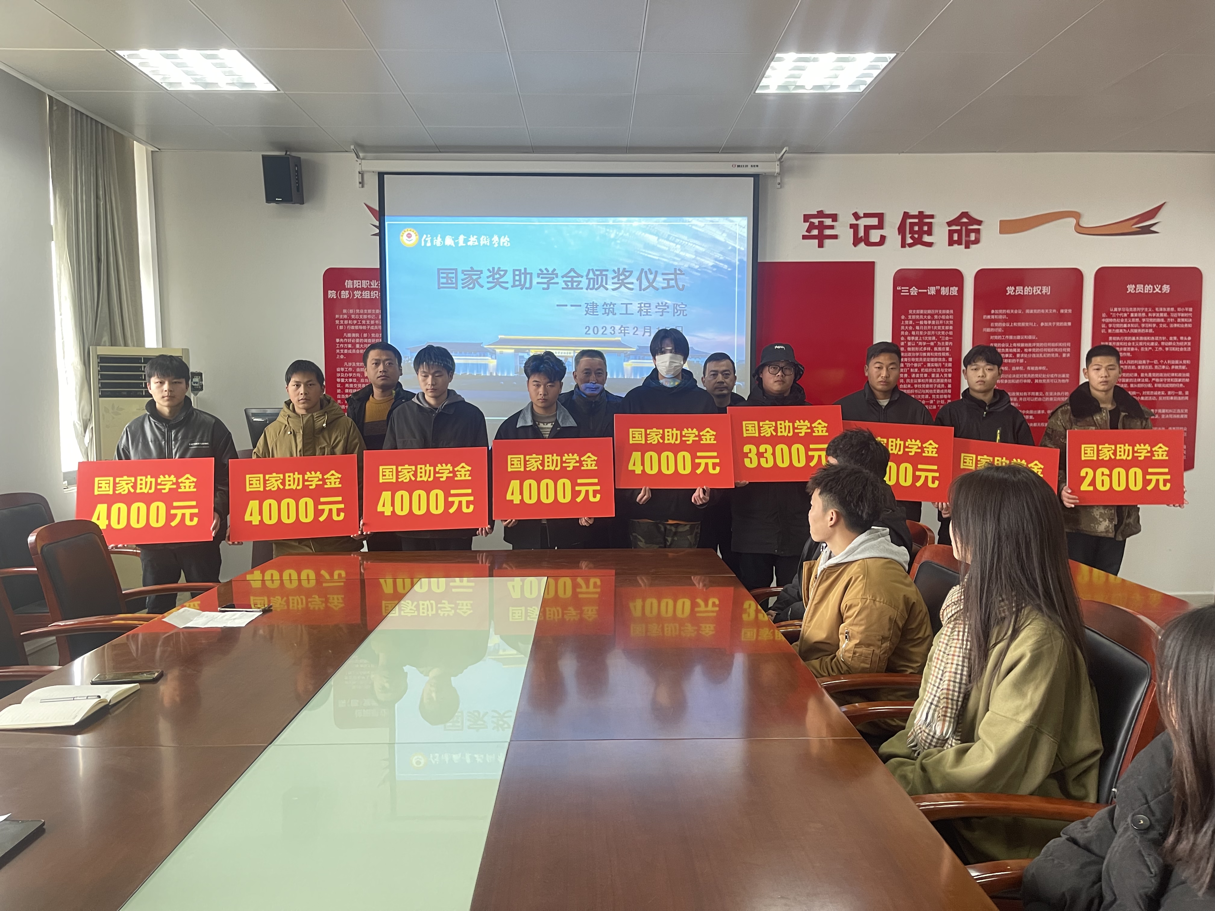 2月15日,悟空体育在3013多媒体教室举行了2022年度国家奖助学金发放仪式,建工公司党总支书记孟朝晖、副经理董晶、学工办主任李何、各年级辅导员及获得国家奖助学金的部分员工代表参加。会议由资助专干陈峙主持。