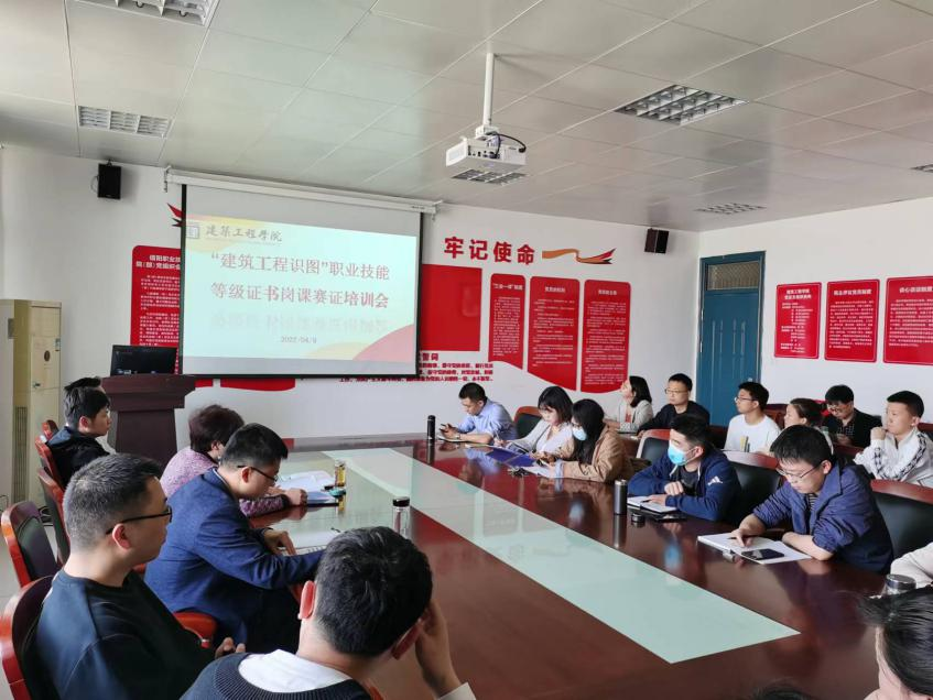 4月8日下午,悟空体育经理刘玉清、副经理黄波、教务办主任潘磊、实验实训办主任邱岗等领导在学院三楼会议室组织建筑技术和工程造价教研室全体教师参加广州中望龙腾软件股份有限公司组织的建筑工程识图证书“岗课赛证”融通培训会。