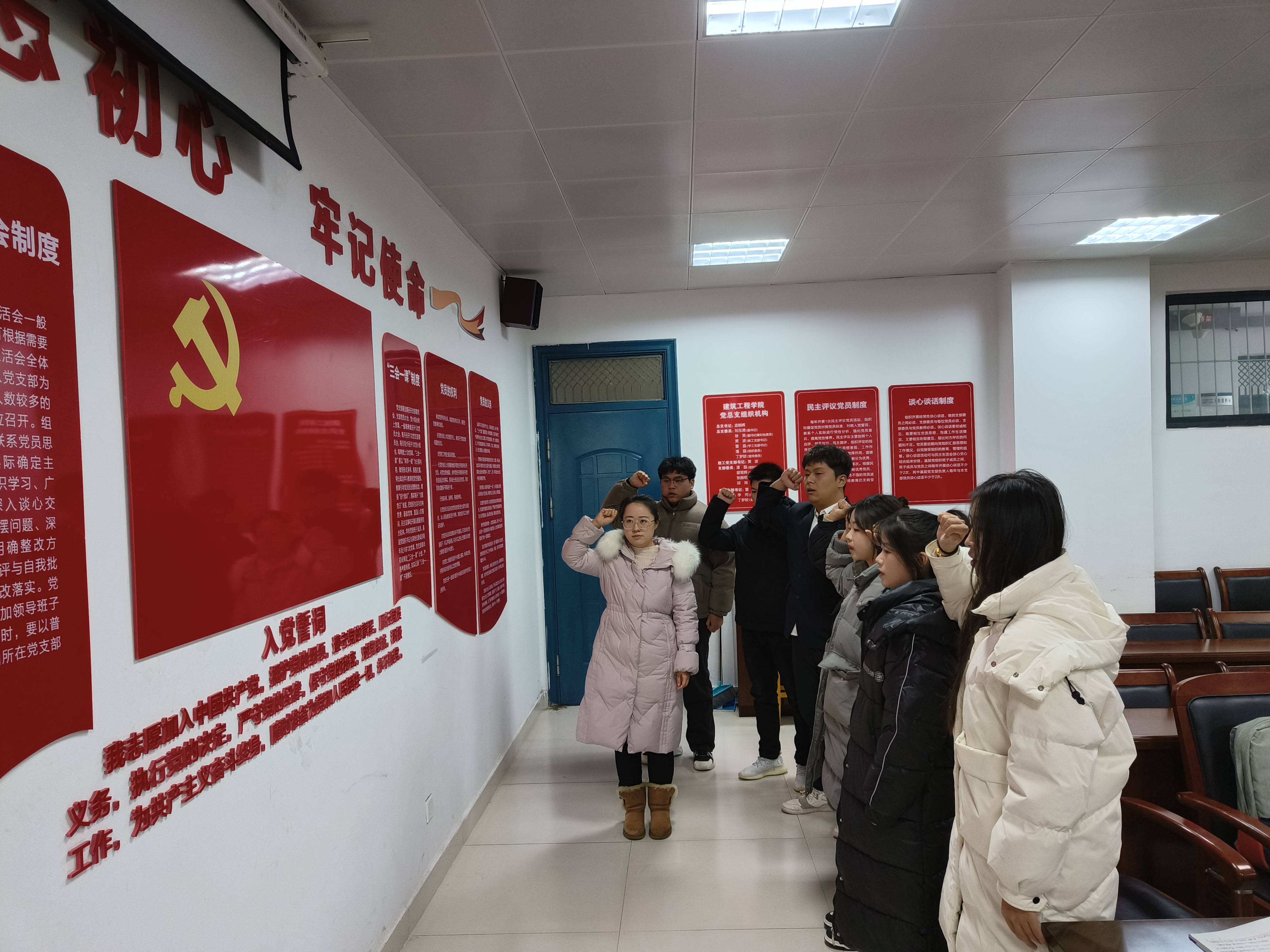 7名员工党员发展对象在大会上做了个人基本情况汇报,表明了入党愿意;入党介绍人就发展对象的日常表现、思想动态等向大会做了说明;与会党员教师展开讨论,并通过无记名投票,一致同意接收7名党员发展对象成为中国共产党预备党员;支部宣传委员丁梦娇带领新入党员工面向党旗进行了庄严宣誓。