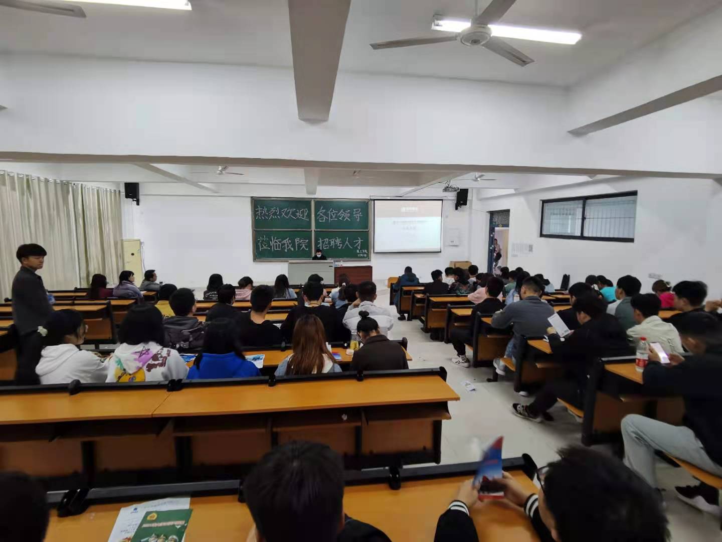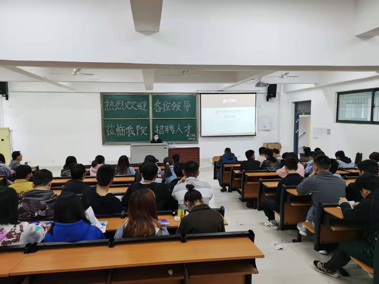 为积极服务员工实习就业,指导员工从就业环境、就业待遇、就业发展等方面深入了解就业问题,2021年4月24日,建工学院在3010多媒体教室举办了专场招聘会。厦门华丽设计装修工程有限公司、安徽昊业建设发展有限公司、苏州广德浩建筑工程管理咨询有限公司、河南地乾基础工程有限公司、广东邦普循环科技有限公司等7家用人单位代表和2019级全体员工参加招聘会。