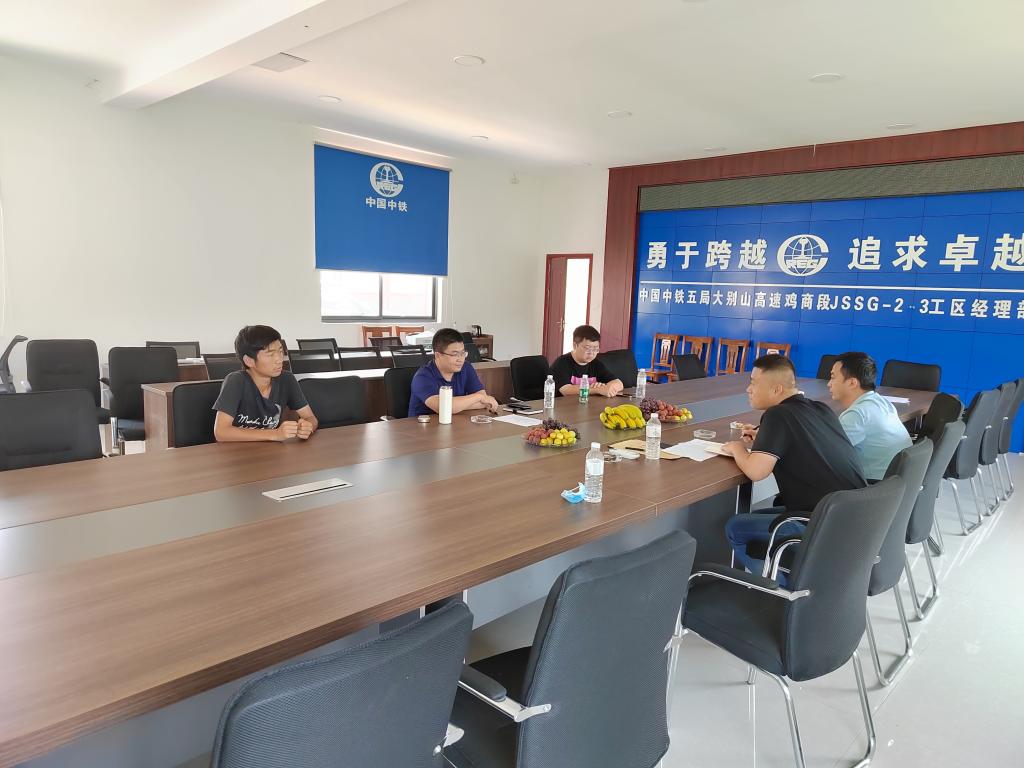 董晶等人在中铁五局人力资源部代部长的陪同下,深入工地、宿舍实地考察了毕业生就业环境,与毕业生开展就业座谈,详细询问了毕业生在工作中面临的问题和困惑,并组织毕业生填写了《毕业生就业跟踪调查问卷》。随后,董晶等人与中铁五局鸡商高速公路工程路段项目部相关负责人,就公司毕业生工作能力、发展前景等问题做了广泛交流,代部长表示公司毕业生吃苦耐劳、工作热情,有一定的理论基础,符合建筑行业用人标准,同时为有就业意向的毕业生再次提供10个用人岗位。