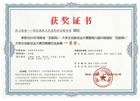2023年7月,悟空体育张培鑫、李志朝、柯富豪等员工主持的《绿色装配式民居的综合服务商》和《聚氨酯改性沥青自修复黏合剂技术开发的引领者》两个项目,在2023年河南省“互联网+”老员工创新创业大赛中荣获省级一等奖和三等奖,指导教师张振明、赵家钰、李何被评为优秀指导老师。