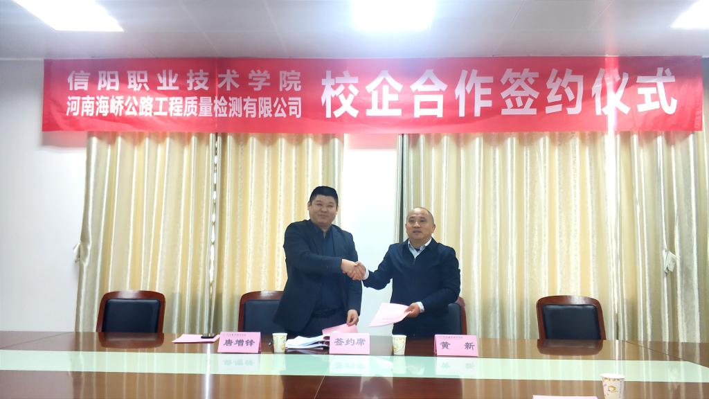 为加强校企合作,进一步推进产教融合,10月26日上午,公司与河南海峤公路工程质量检测有限公司在建工学院会议室举行了校企合作签约仪式。河南海峤公路工程质量检测有限公司总经理唐增锋、实验室主任张淑娟、试验检测工程师郑军、黄绍祥,公司党委委员工会主席黄新、实验实训管理中心、教务处(校企办)、悟空体育负责人及有关人员出席本次仪式。签约仪式由戚荣金主持。