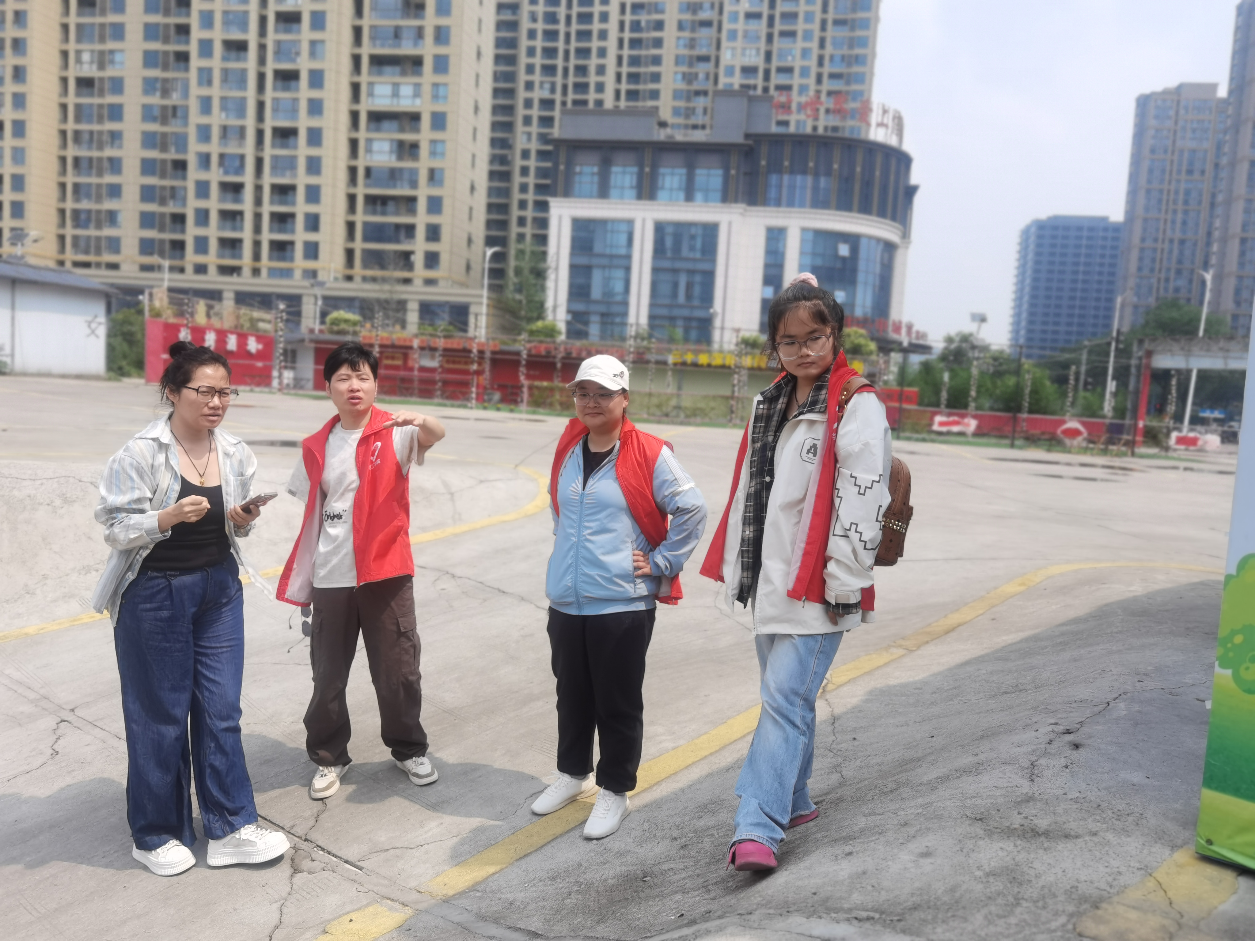 抵达戴庙社区后,党员教师迅速与社区工作人员展开深入交流,详细了解便民广场的主要规划目标、功能定位及具体规划区域等信息。随后,他们运用专业测量工具,对广场地形地貌、空间尺寸等进行精准测量,认真记录各项数据,为后续科学规划设计提供详实依据。
