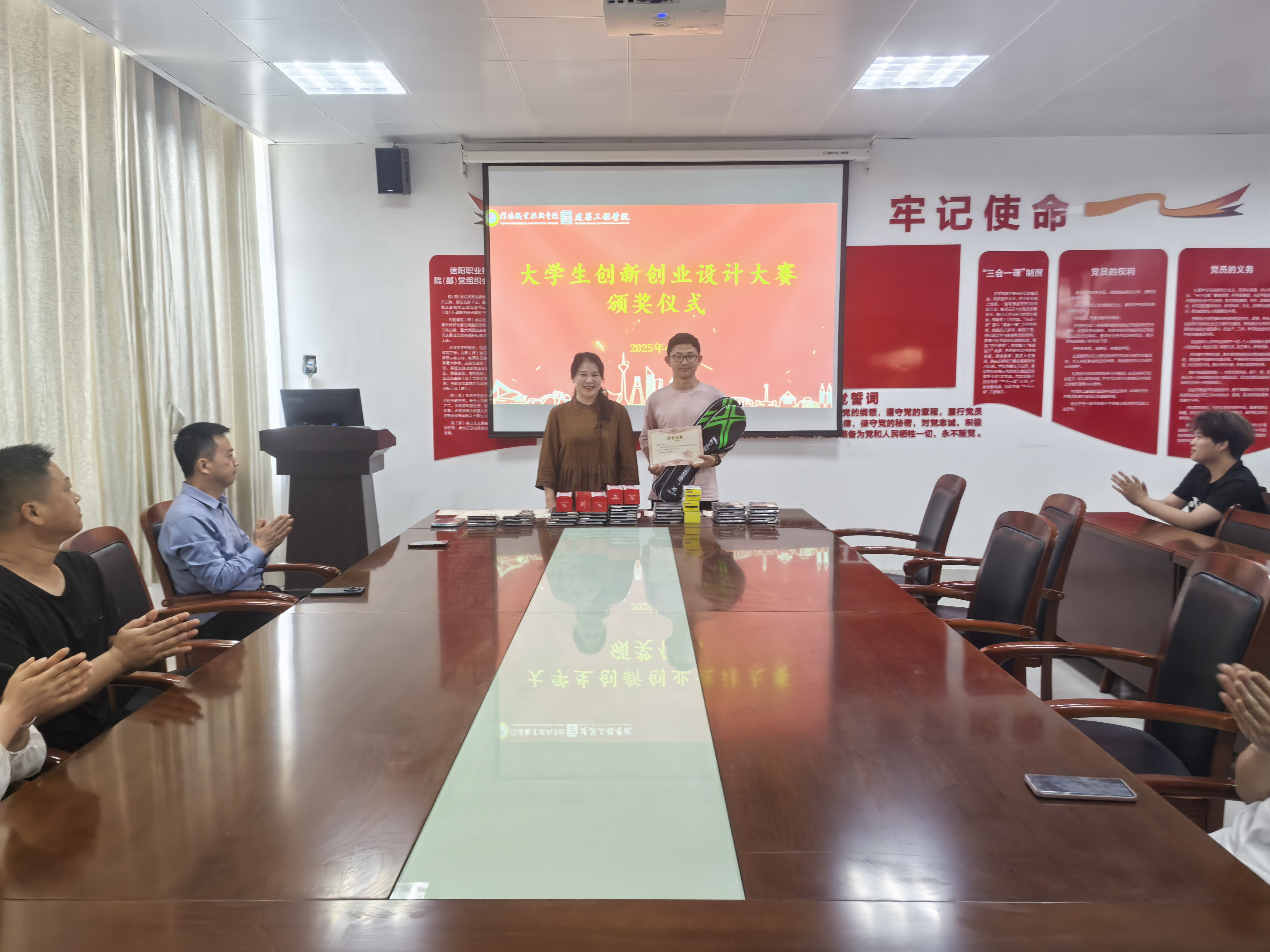 4月15日下午,学院选拔赛在3013会议室举办,副经理董晶、学工办主任李何、团总支书记丁梦姣和全体辅导员担任本次大赛评委。经过前期动员和项目培育,全院共有15支团队报名参赛,项目涵盖智能建造、BIM技术应用、建筑数字化管理等多个新兴领域,充分展现建筑专业与前沿科技的创新融合。在路演现场,各团队通过PPT讲解、实物演示、情景模拟等形式全方位展示创新成果。最终,“小屹同学校园外卖递送服务”、“‘杏’好有你文创产品”和“Free-box模块化低能耗民宿建筑设计”三个项目脱颖而出,推荐参加校级选拔赛。